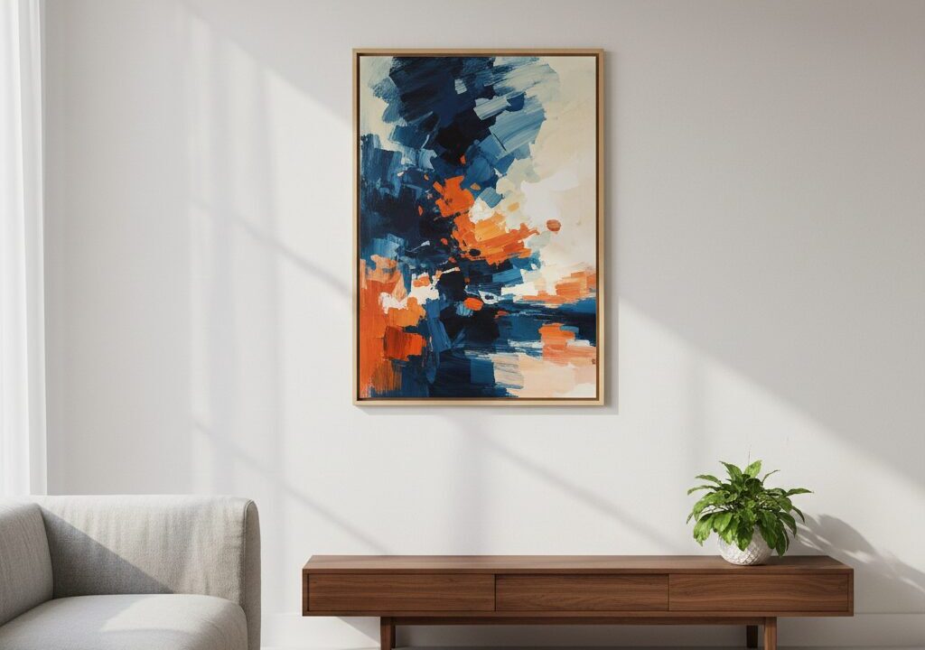 A4サイズやそれ以上の大きさになり、存在感が一気に増します。リビングのソファの上や、ダイニングの壁面など、部屋のフォーカルポイント(視線が集まる場所)に飾るならこのサイズが必要です。迫力があり、アートの筆致やディテールもより楽しめますが、価格もそれなりに上がります。
