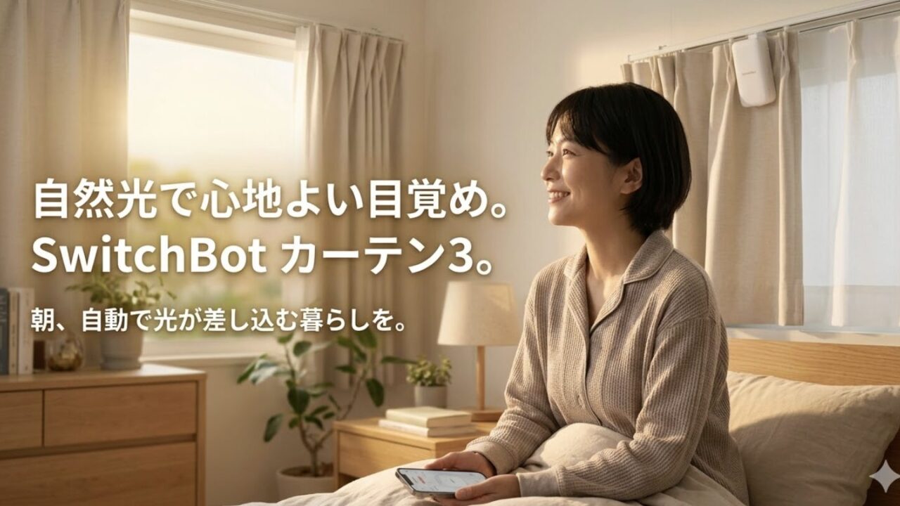 もし賃貸で取り付けをためらっている方がいれば、こちらの記事もぜひ参考にしてください。`原状回復OK!賃貸でも叶うスマートカーテン、今だけ15%オフ` 手間なく、スマートに、あなたの毎日が生まれ変わる。そんな体験が、わずかな投資で手に入る「今」を見逃さないでほしいですね。光で目覚める心地よさ、あなたも体感しませんか?このチャンスに、ぜひSwitchBot カーテン3でスマートな生活を始めてみませんか。