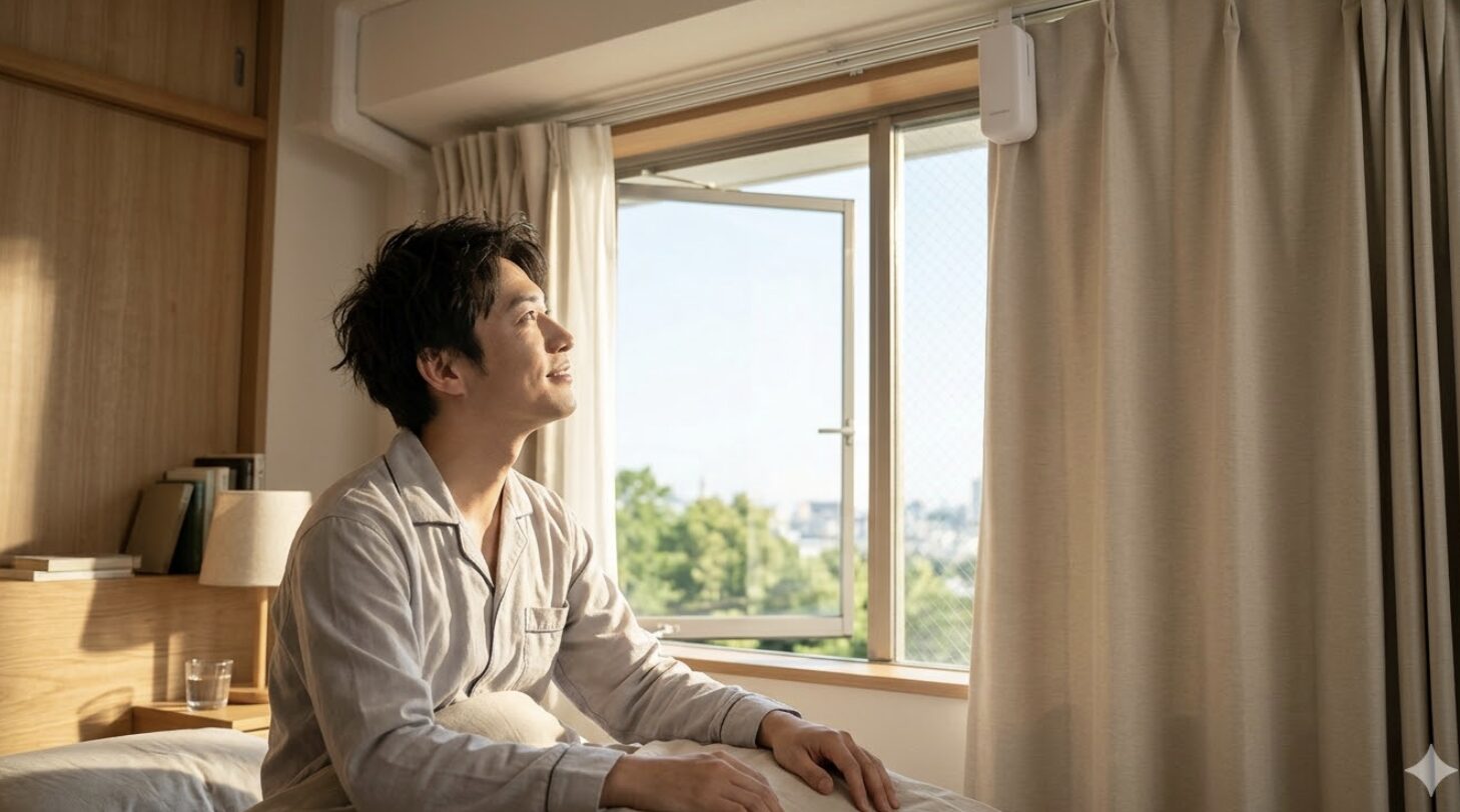 日中も、アプリやスマートスピーカーでサッと開閉できる手軽さ。家にいない時でも、スマートフォンのGPS連動で自動的に閉まる設定にしておけば、防犯対策にも一役買ってくれます。まさに「あなたの『当たり前』を、もっと自由に、もっと豊かに」してくれるデバイス。これまでの「カーテンは手で開けるもの」という常識が、いかに私たちの生活にちょっとした手間を加えていたかを実感するはずです。