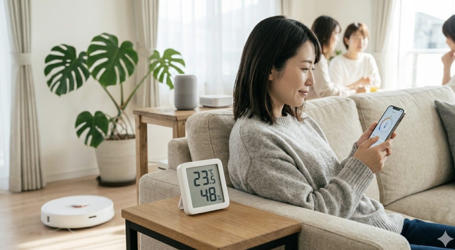 特に注目していただきたいのが、新登場の「SwitchBot 温湿度計 Pro」です。「Pro」の名にふさわしい高精度な温湿度データで、あなたの空間をプロの視点から最適化できます。漠然とした「快適」ではなく、データに基づいた「最適な環境」を追求し、家族の健康や大切なコレクションをカビや結露から守るのに役立ちます。赤ちゃんやペットがいるご家庭では、常に最適な温度と湿度を保ち、安心感を提供してくれるでしょう。SwitchBotハブなど他の製品と連携すれば、「ちょうどいい」環境を自動でキープすることも可能です。外出先からでも家の状況を確認でき、安心感も得られます。スマートホーム化で得られる安心は、温湿度管理だけでなく、見守りにも広がります。例えば、SwitchBotスマートカメラで安心!高画質AIが見守るスマートライフ のように、様々なシーンで私たちの生活を支えてくれます。