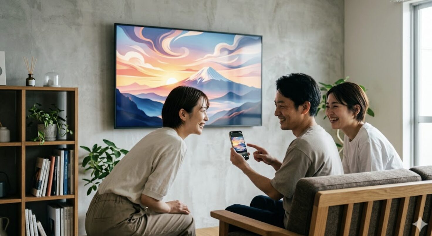 そして、このキャンバスの真骨頂は、あなたの言葉や簡単な指示だけで、AIが世界に一つだけのアートを瞬時に生成してくれる点です。「夏の夕暮れ、海辺を散歩する猫」といった具体的なフレーズから、あなたの頭の中のイメージが、目の前のアートとして具現化されるのです。アート選びに悩む時代は終わりを告げ、誰もがクリエイターになれる。この感覚、まさしく未来の住まいです。スマートホームが提供する最先端体験という意味では、まさかの静脈認証!SwitchBotで自宅の未来を先取る最先端体験もぜひチェックしてみてください。