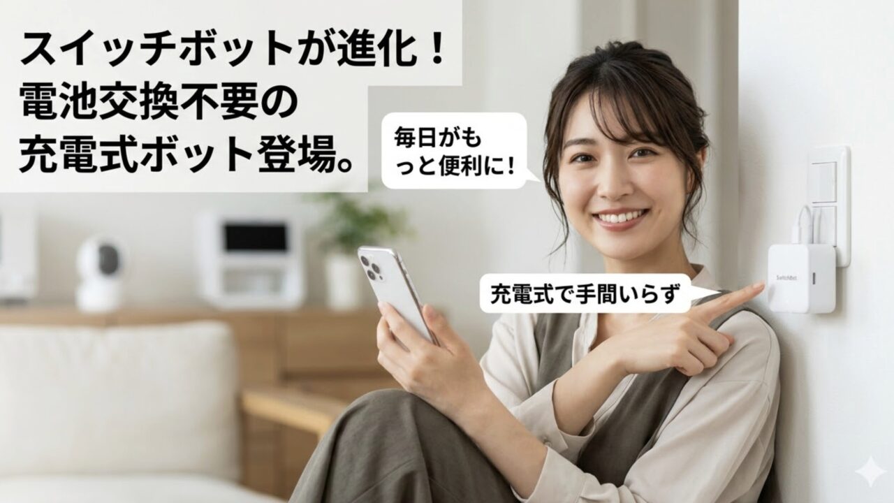 こんにちは、パーシーです。今回は「SwitchBotの原点、ついに進化。電池交換不要の「SwitchBot ボットCharge」予約販売開始!」について、最新情報をたっぷりお届けします。